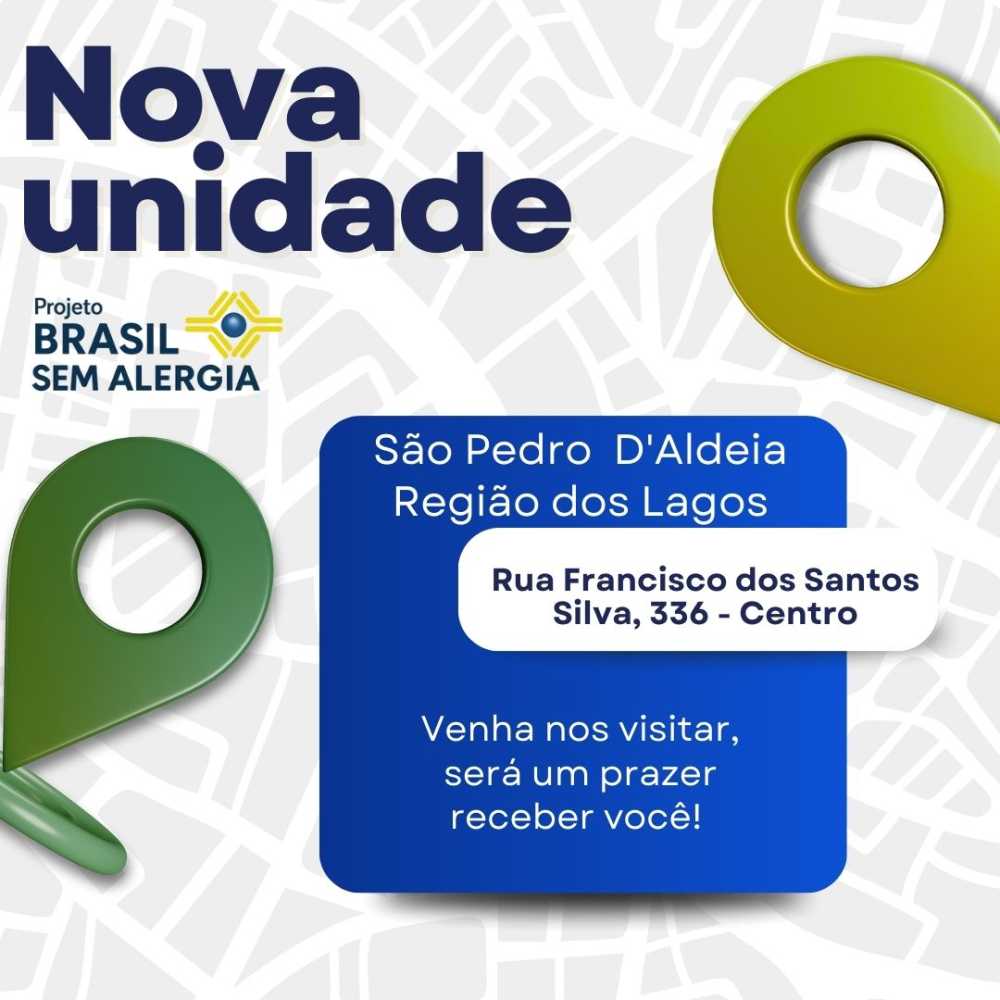 O Projeto Social Brasil Sem Alergia tem o prazer de anunciar a inauguração de sua nova unidade em São Pedro da Aldeia para cuidar da sua saúde com qualidade e preços populares! ❤️